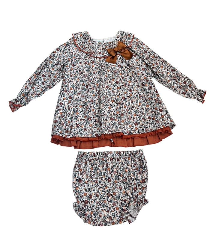 Abitino con Coulotte in Cotone Fantasia, Collo Rouche e Fiocco