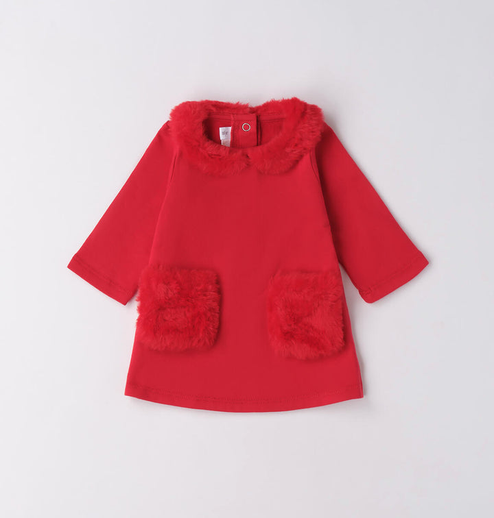 Abitino natalizio con colletto e tasche in ecopeliccia