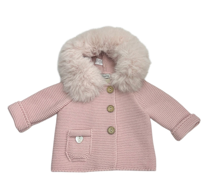 Cappottino in Filo di Cotone con Cappuccio Pelliccia, Bottoncini in Legno, Taschina