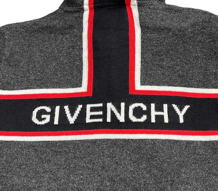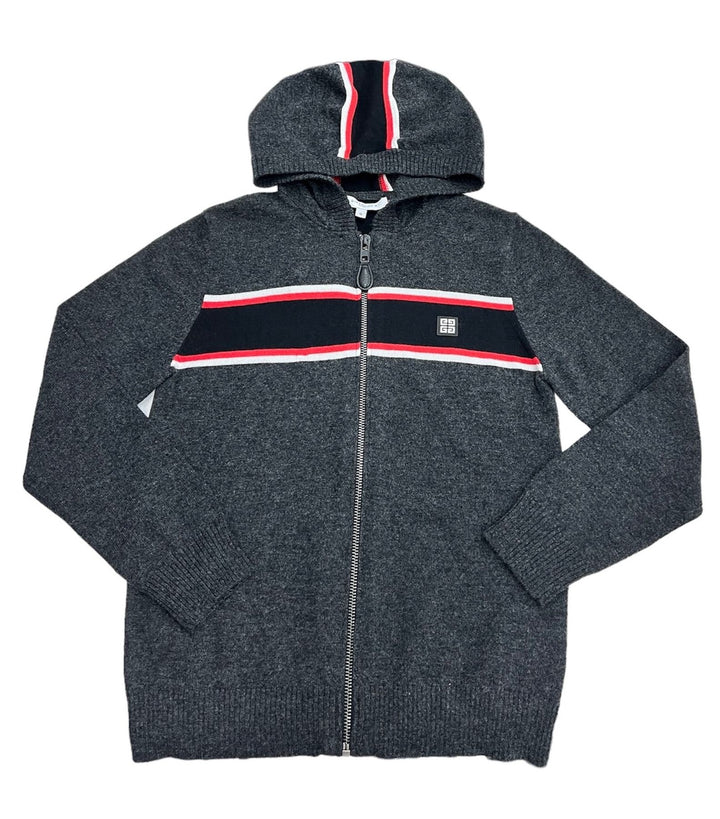 Cardigan con Cappuccio e Zip in Maglia, Striscia Tricolore