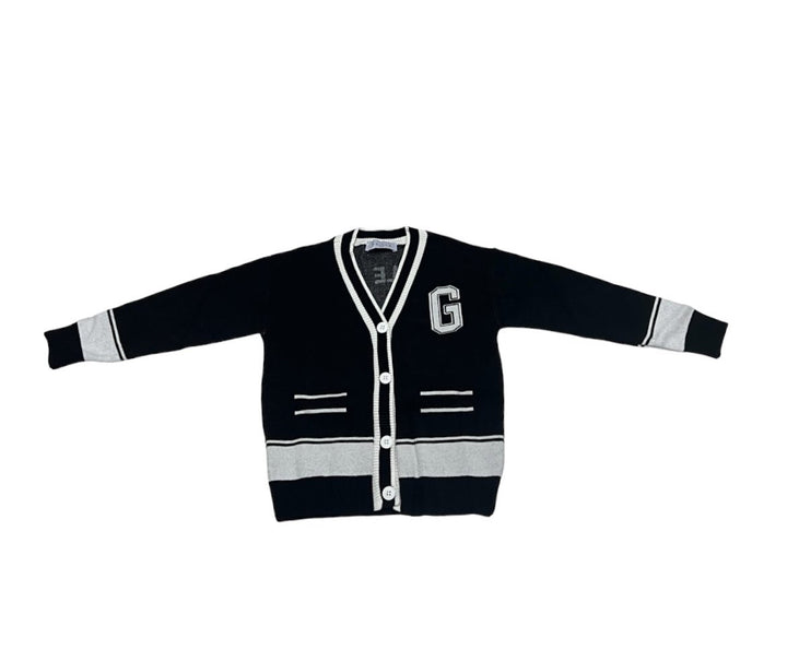 Cardigan con Chiusura a Bottoni e Mini Ricamo Scritta Logo a Contrasto sul Petto