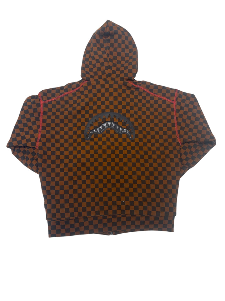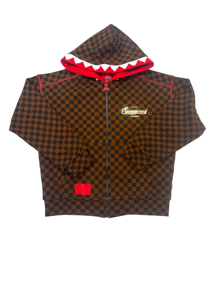 Felpa con zip e cappuccio a scacchi con scritta oro