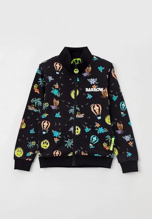 Felpa con Zip Tinta Unita con Stampe in Contrasto, Logo