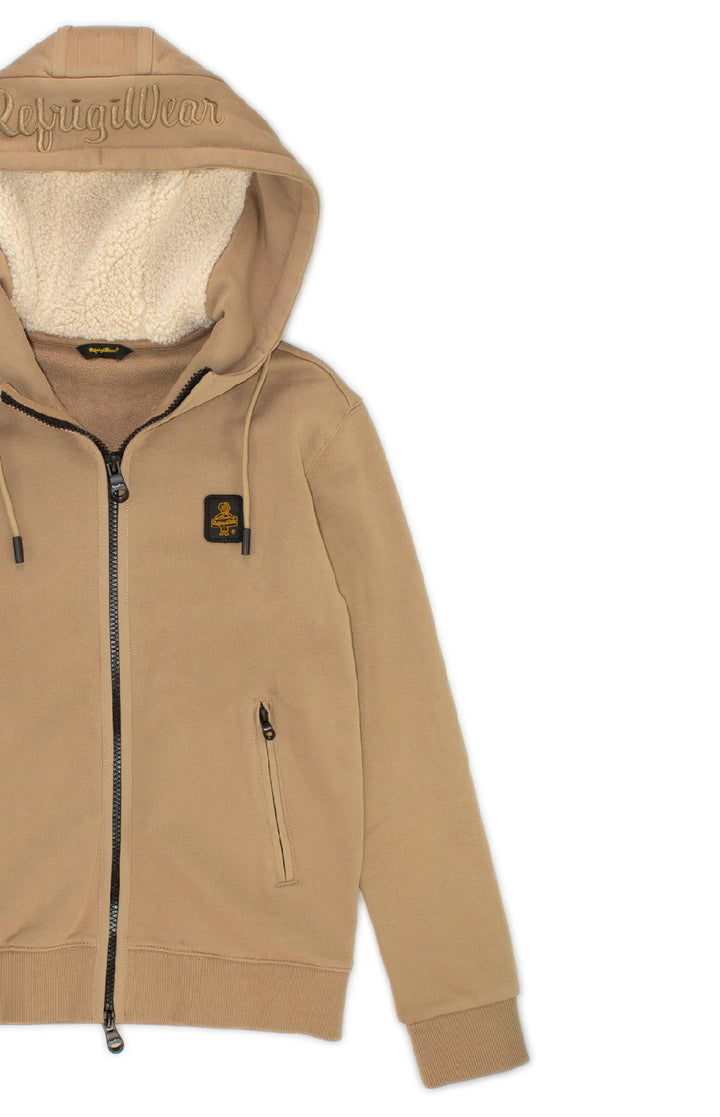 Felpa full con zip e cappuccio con pelliccia all'interno