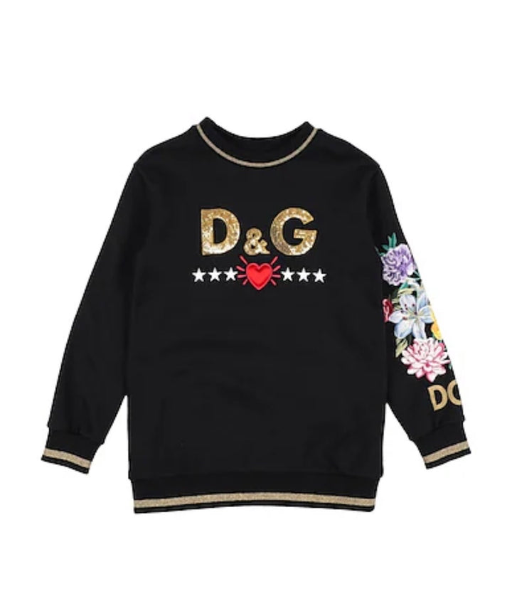 Felpa Girocollo con Ricamo sul tutto il Capo, Logo e Strisce Glitter