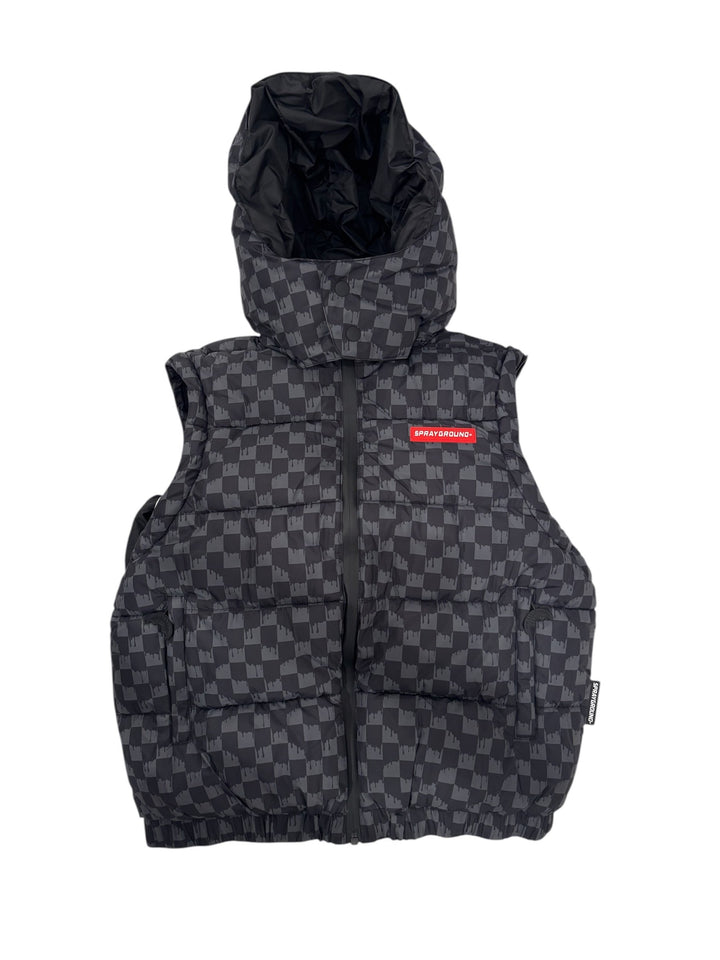 Giubbino con cappuccio e scacchi con maniche staccabili diventa Gilet