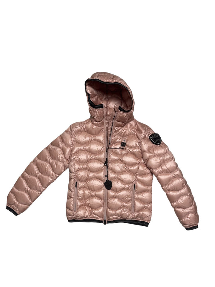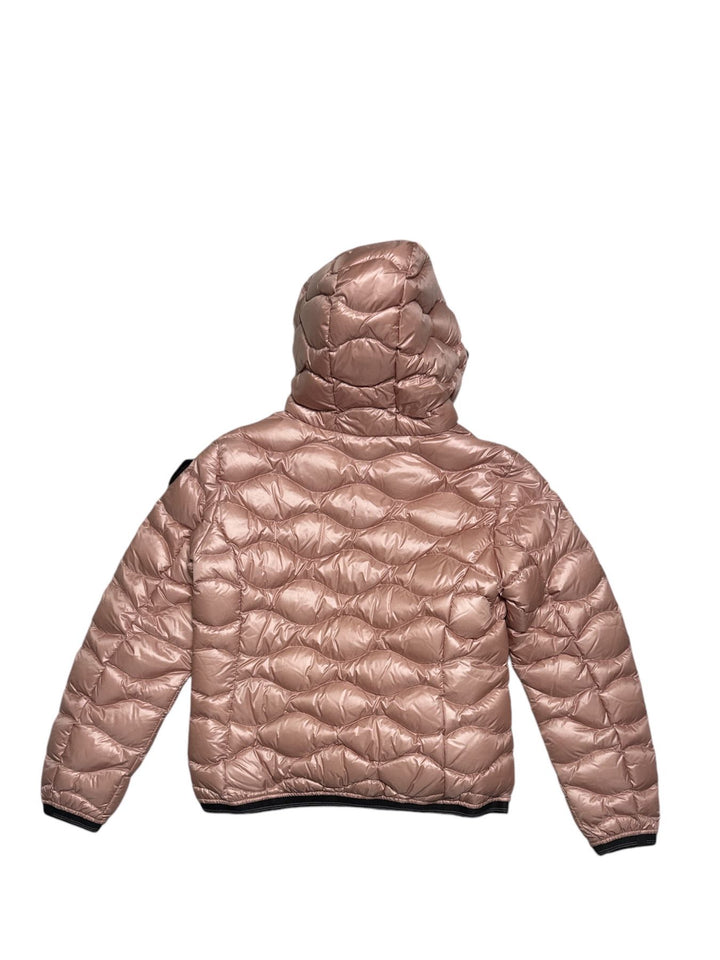 Giubbino corto con cappuccio imbottito in piuma d'oca