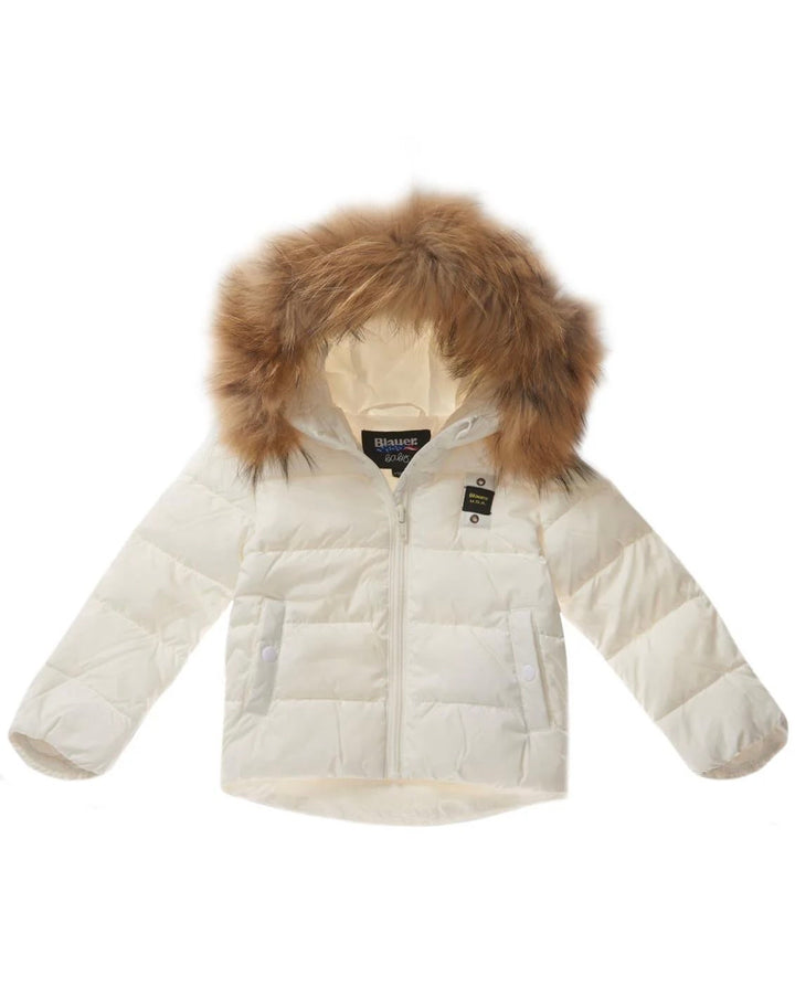 Giubbino in piuma d'oca con cappuccio decorato con pelliccia orginale staccabile