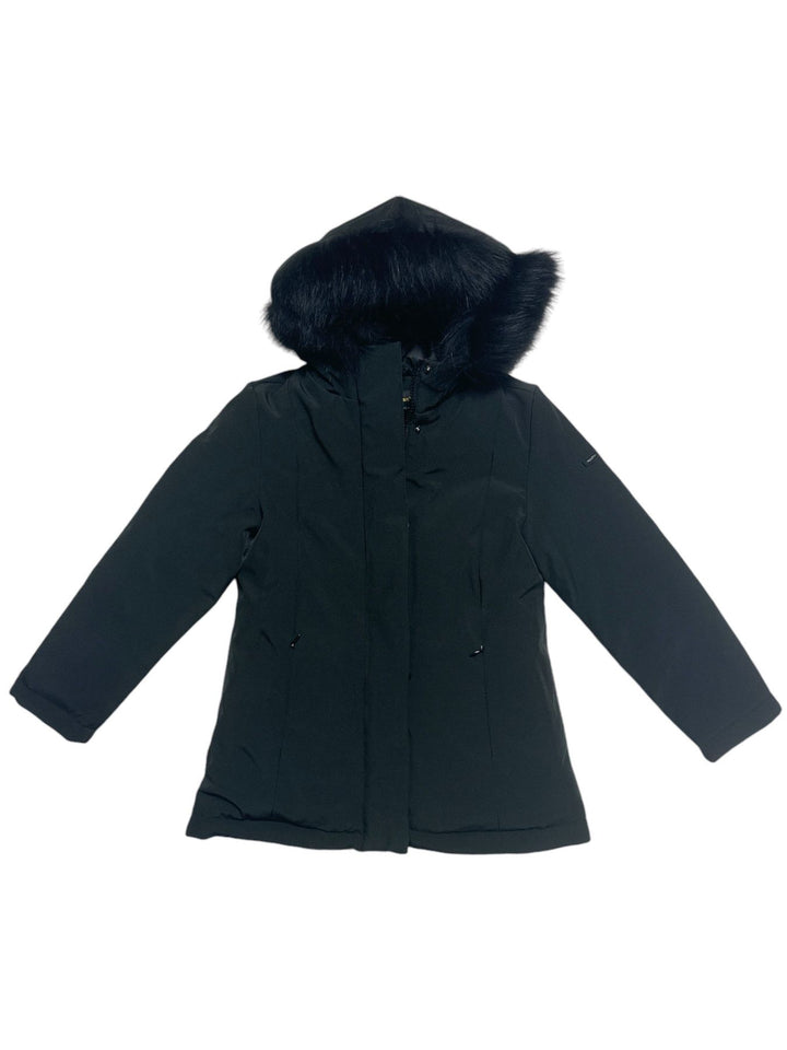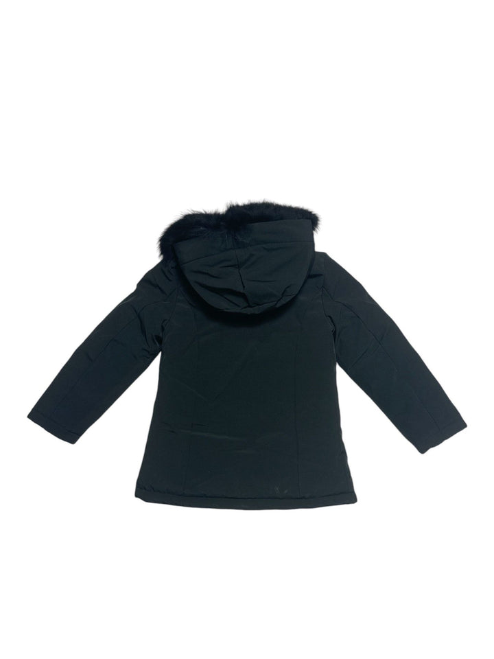 Giubbino lungo con cappuccio e pelliccia in piuma
