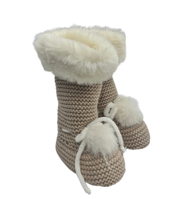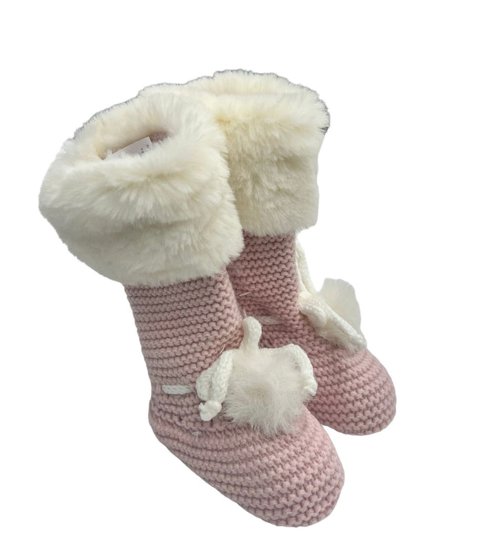 Scarpine in Filo di Cotone con Pom Pon Laccetti e Pelliccia