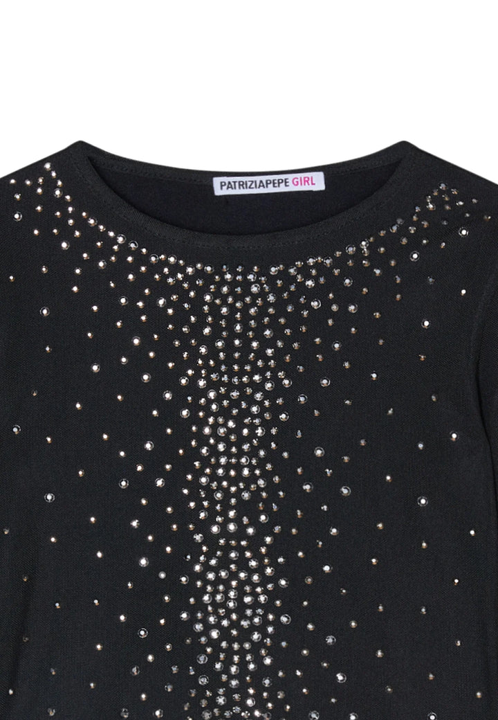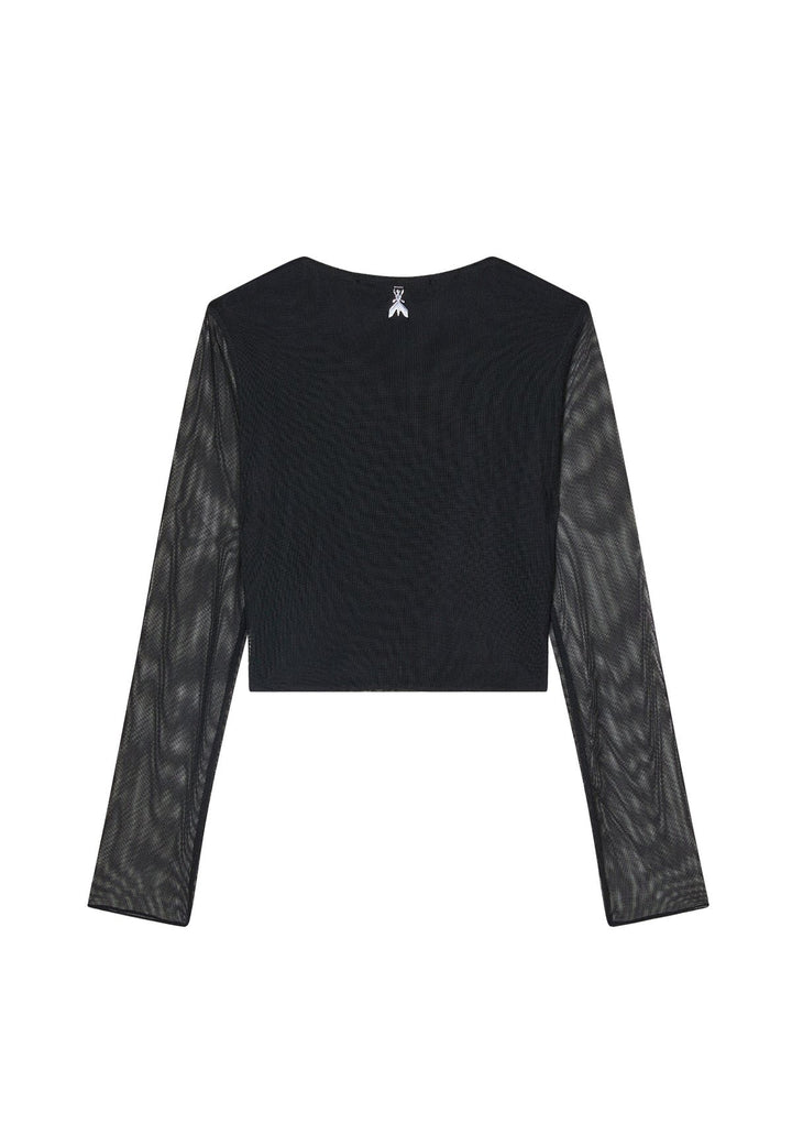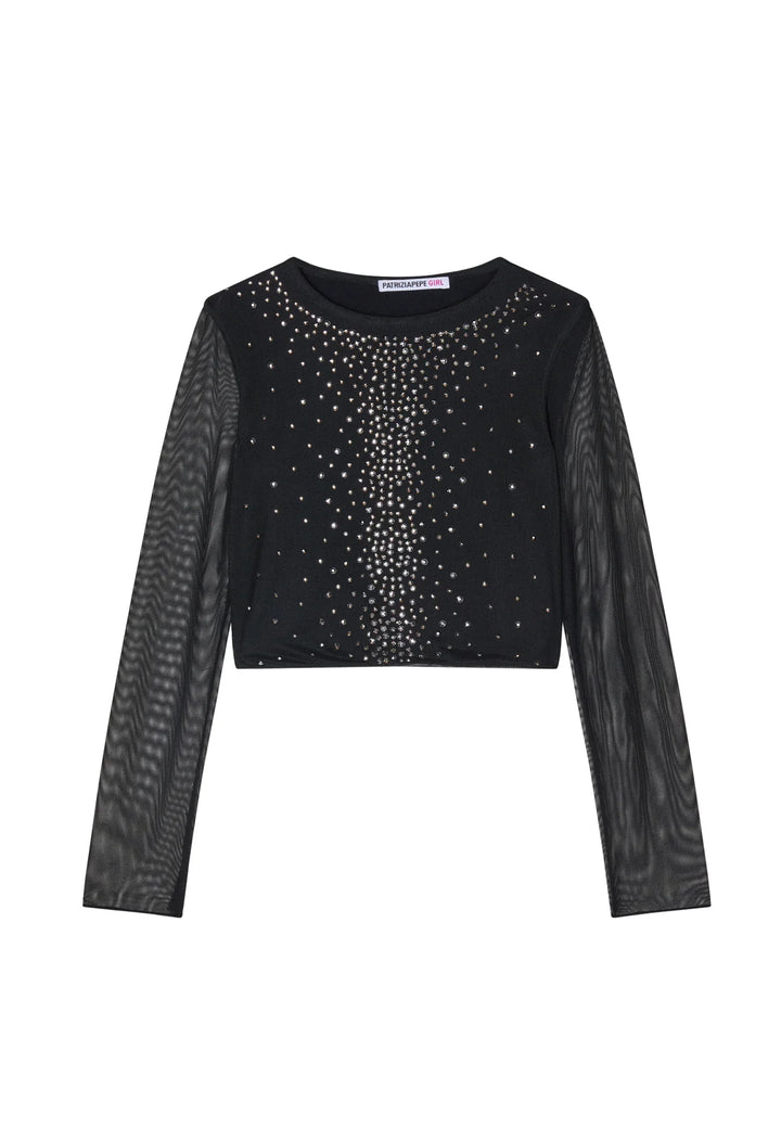 T-shirt manica lunga a rete e con strass