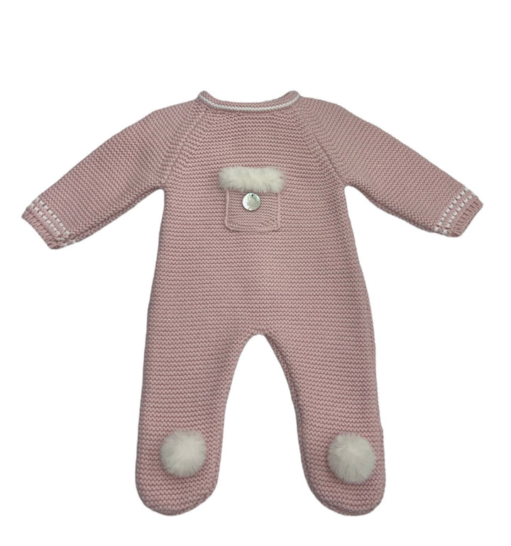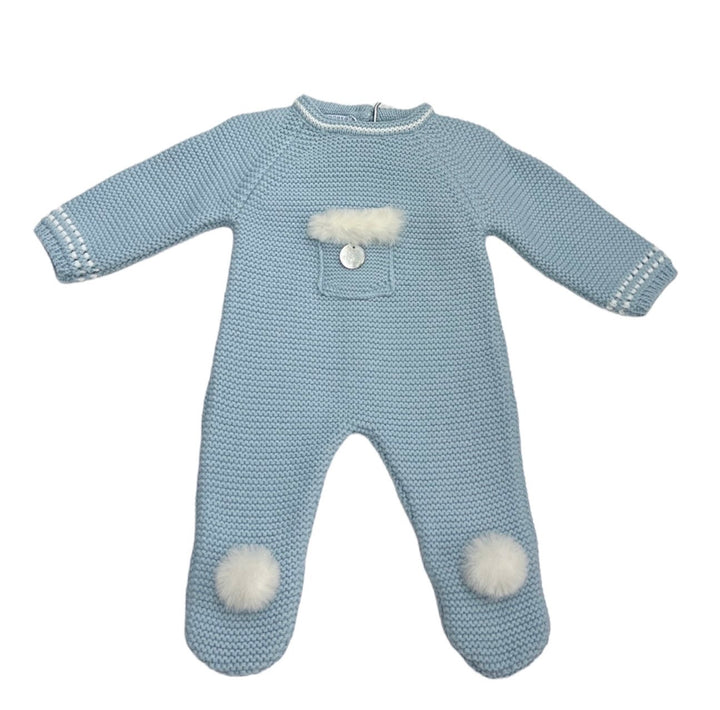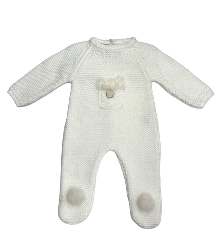 Tutina in Filo di Cotone, Tinta Unita, con Tasche Davanti con Pom Pon