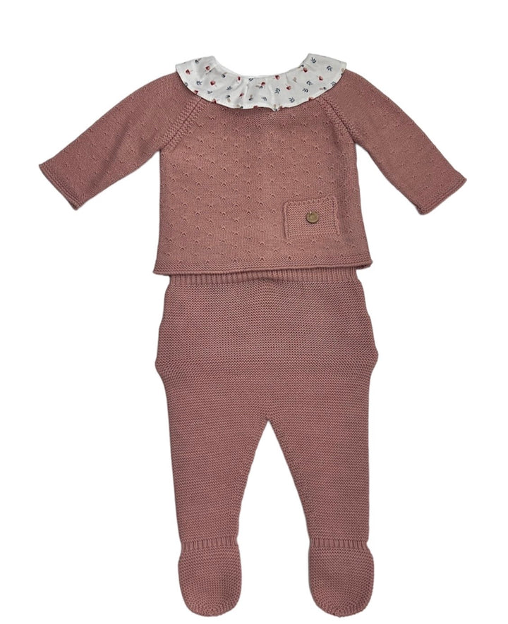 Tutina Spezzata in Filo Cotone, Collo Rouche in Cotone Fantasia e Tasche